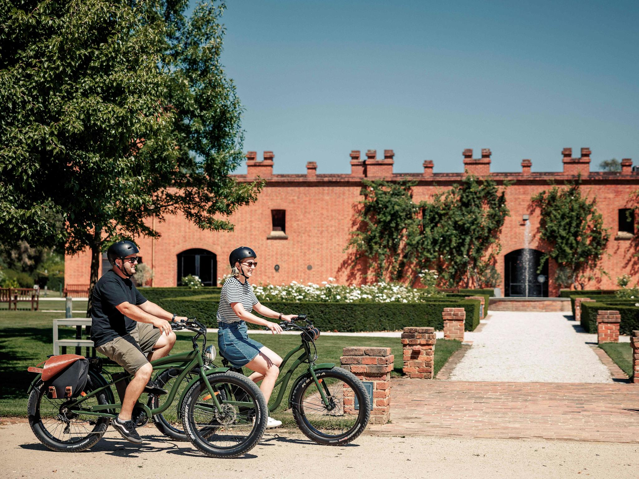 Featuring modern pedal-assist electric bikes, riders can effortlessly cruise through scenic landscapes, covering more distance with less effort than a traditional bike. Follow the iconic Murray to Mountains Rail Trail or explore the Rutherglen Loops, with quiet country roads and dirt tracks connecting boutique wineries, cellar doors and local attractions.